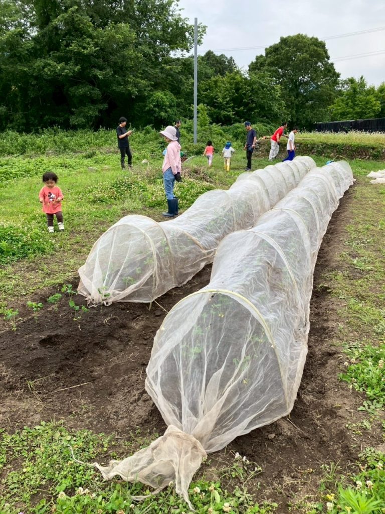 今回は前回植えた大豆が芽を出して育ってきたので地植えして、鹿よけのネットをかぶせることを行いました。
