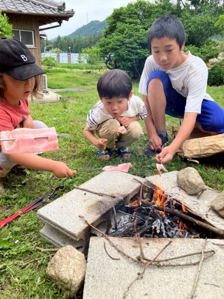 そのあと、庭でおにぎりを食べながら焚き火を楽しみました。